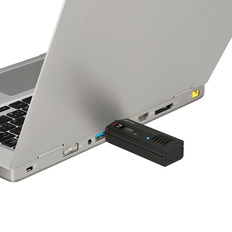 本商品は、Wi-Fi 7に対応した無線LAN子機です。パソコンのUSB端子に装着して、Wi-Fi 7の高速通信が可能です。本商品はUSB 3.2(Gen1)に対応しているので、Wi-Fi 7のスピード性能を余すことなく活かすことができます。