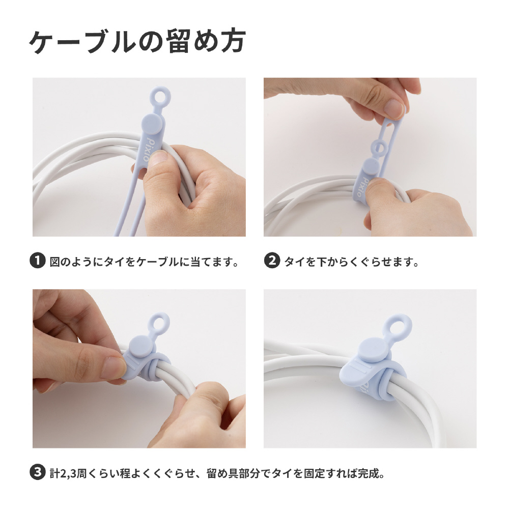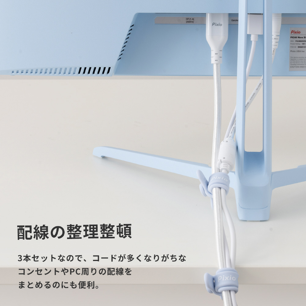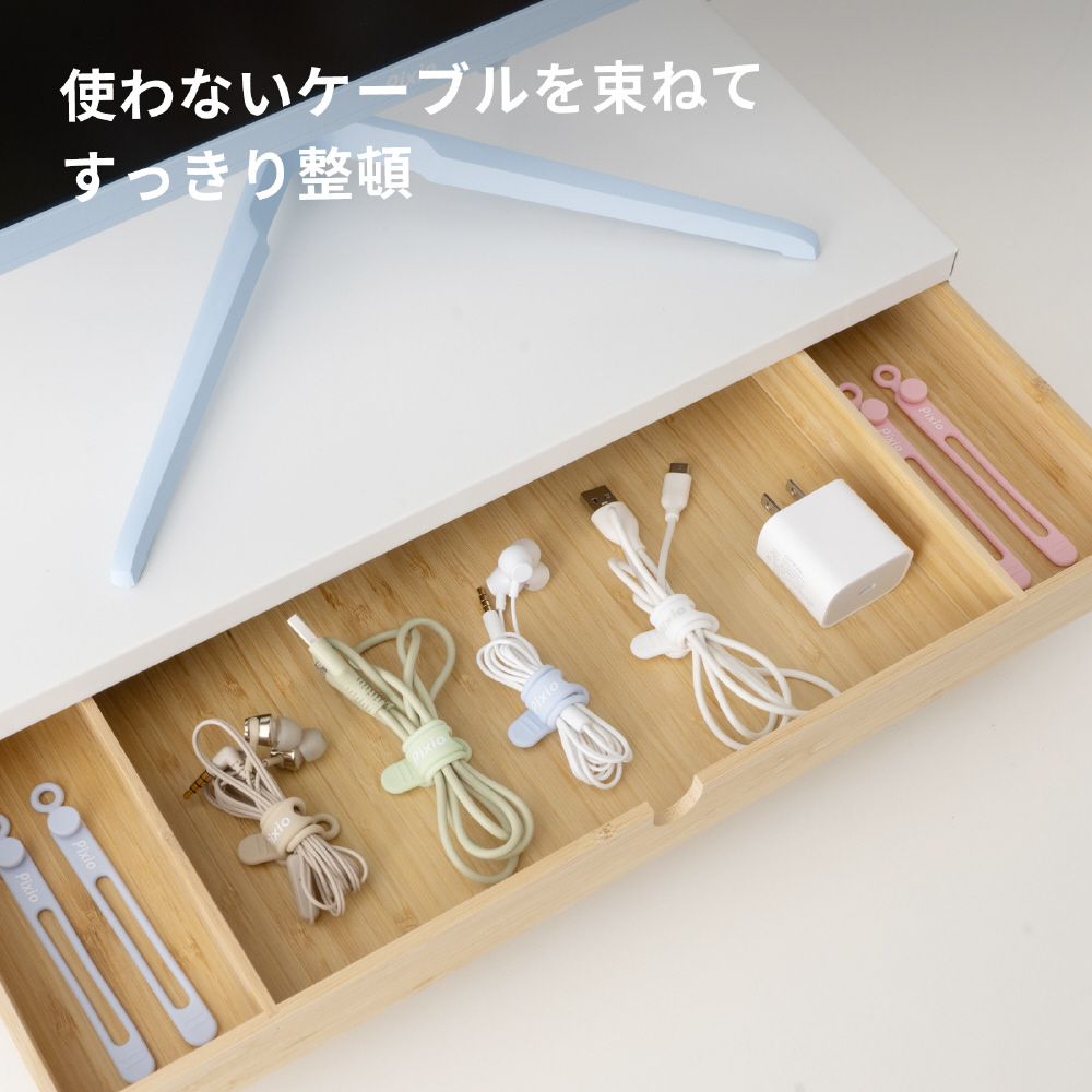シリコン素材なので、HDMIケーブルやDPケーブル、各種電源ケーブルなどの太いケーブルから、USBケーブルなどの細いケーブルまでしっかりホールド。