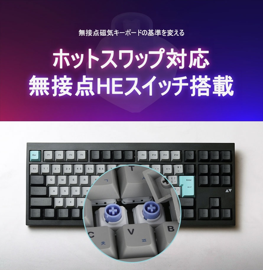 ラピッドトリガー対応の日本語配列80%レイアウト ゲーミングキーボード。
