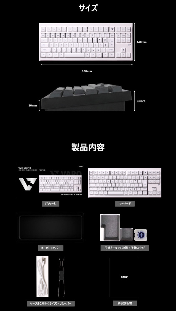ゲーミングキーボード(ラピッドトリガー対応) VARO VM87 HE 無接点 ホワイト VM87HE-J-NCW [有線 /USB]