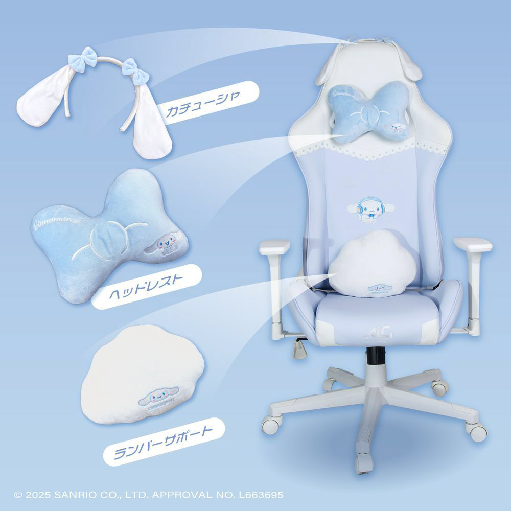 サンリオキャラクターズ「シナモロール」をイメージしたゲーミングチェアです。
