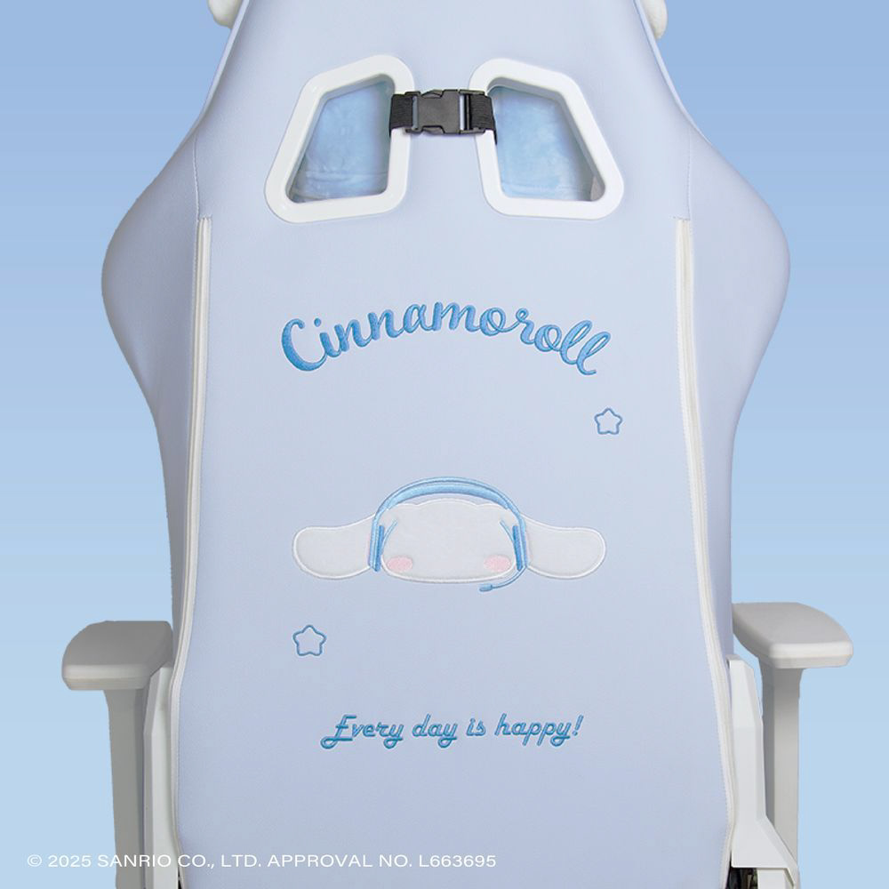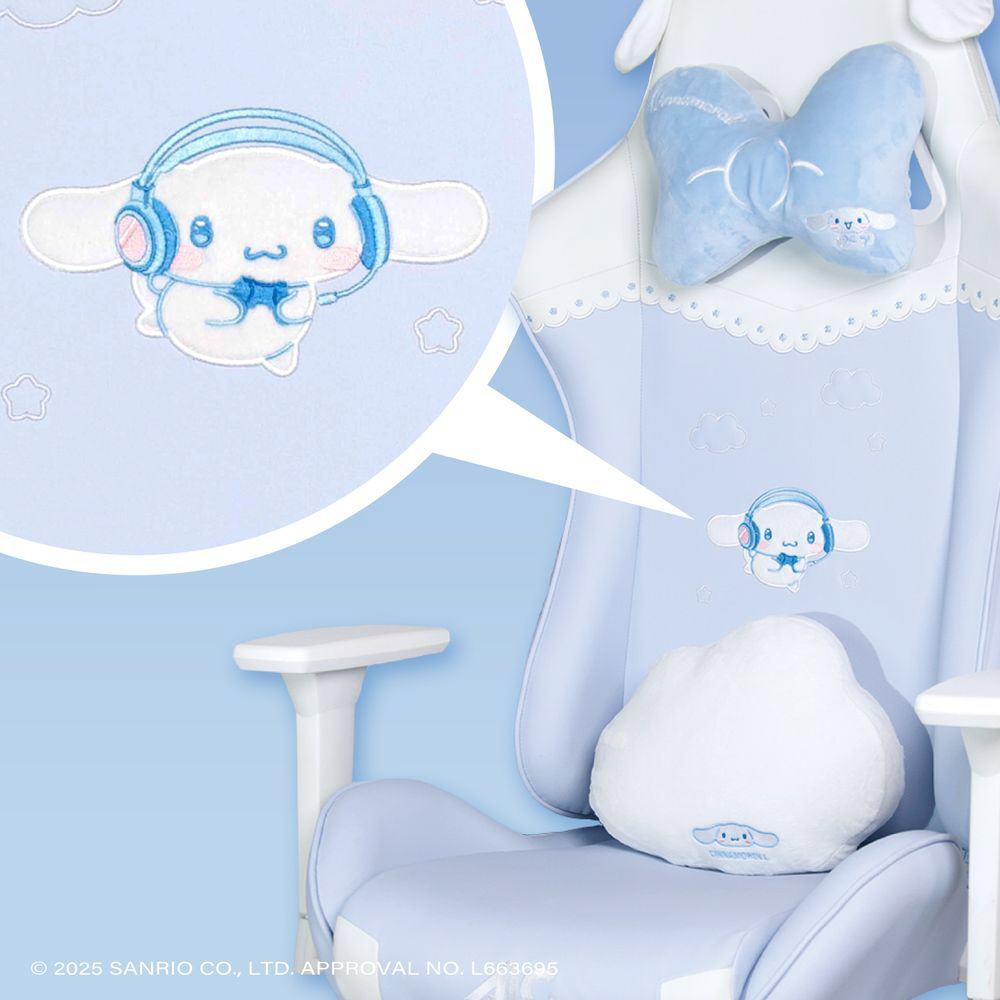 サンリオキャラクターズ「シナモロール」をイメージしたゲーミングチェアです。カラーリングから刺繍まで全てシナモロール仕様となっております。