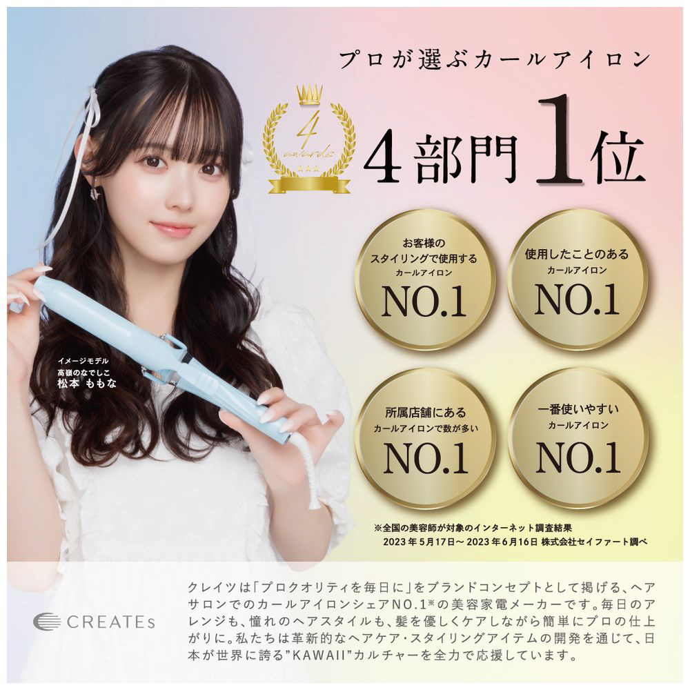 アイロンパイプ、プレートにクレイツイオン(R)を加工。髪の潤い感を守りながらキューティクルを整え、思わず触れたくなるKAWAIIヘアに。