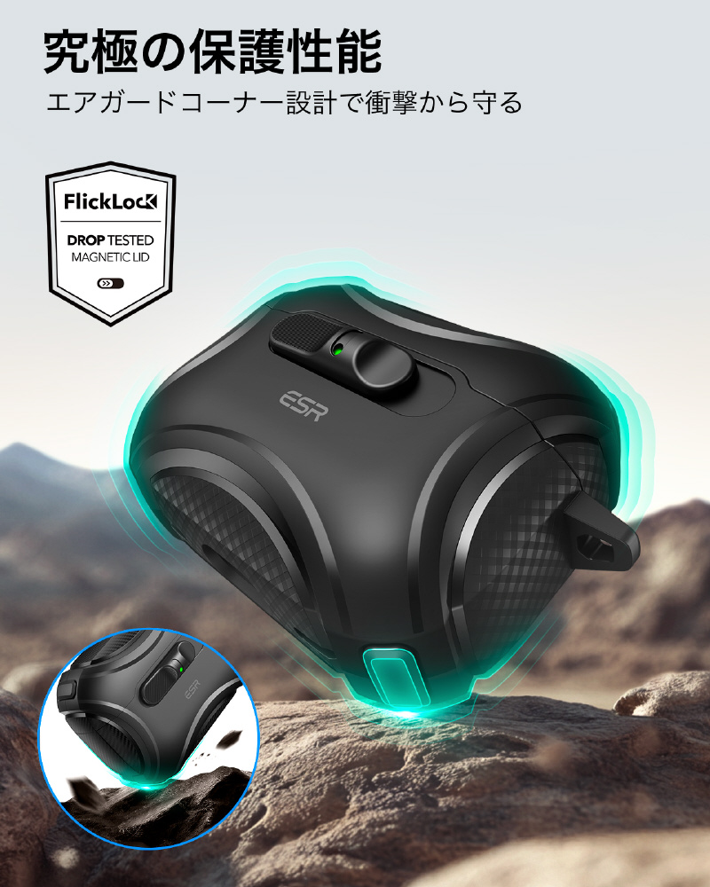 衝撃吸収ポリマーとエアガードコーナーが充電ケースを落下や衝撃からしっかり守ります。