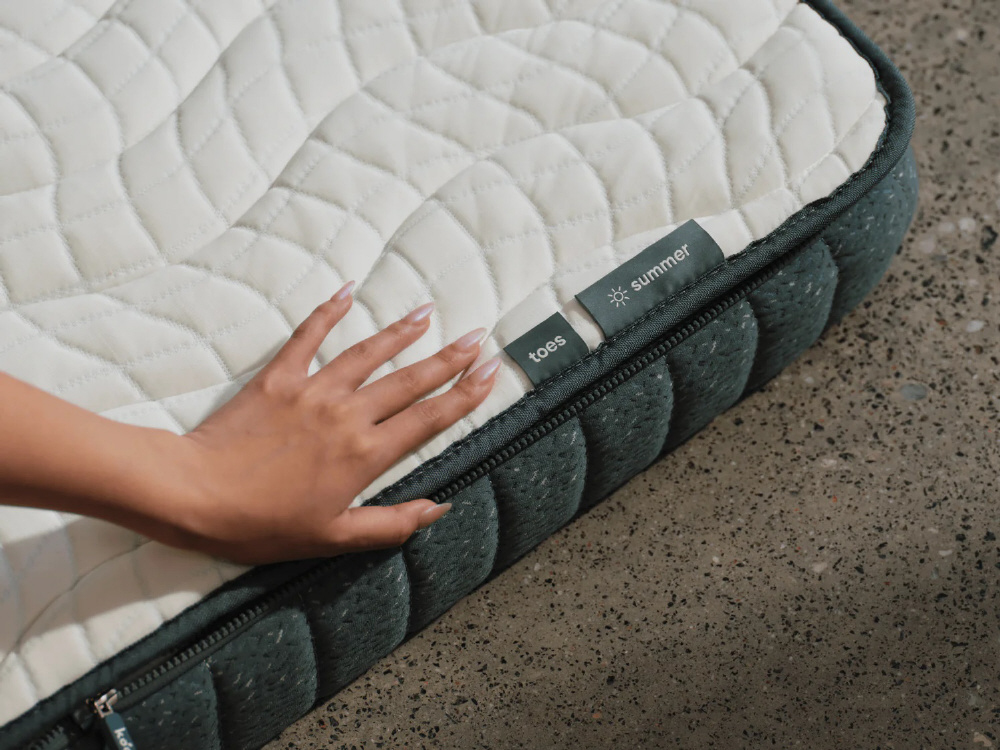 3層構造の芯材と5つのゾーニングで、体の各部位を的確にサポート。腰や背中はしっかり硬めの寝心地、肩や脚はやさしく体圧を受け止める設計です。