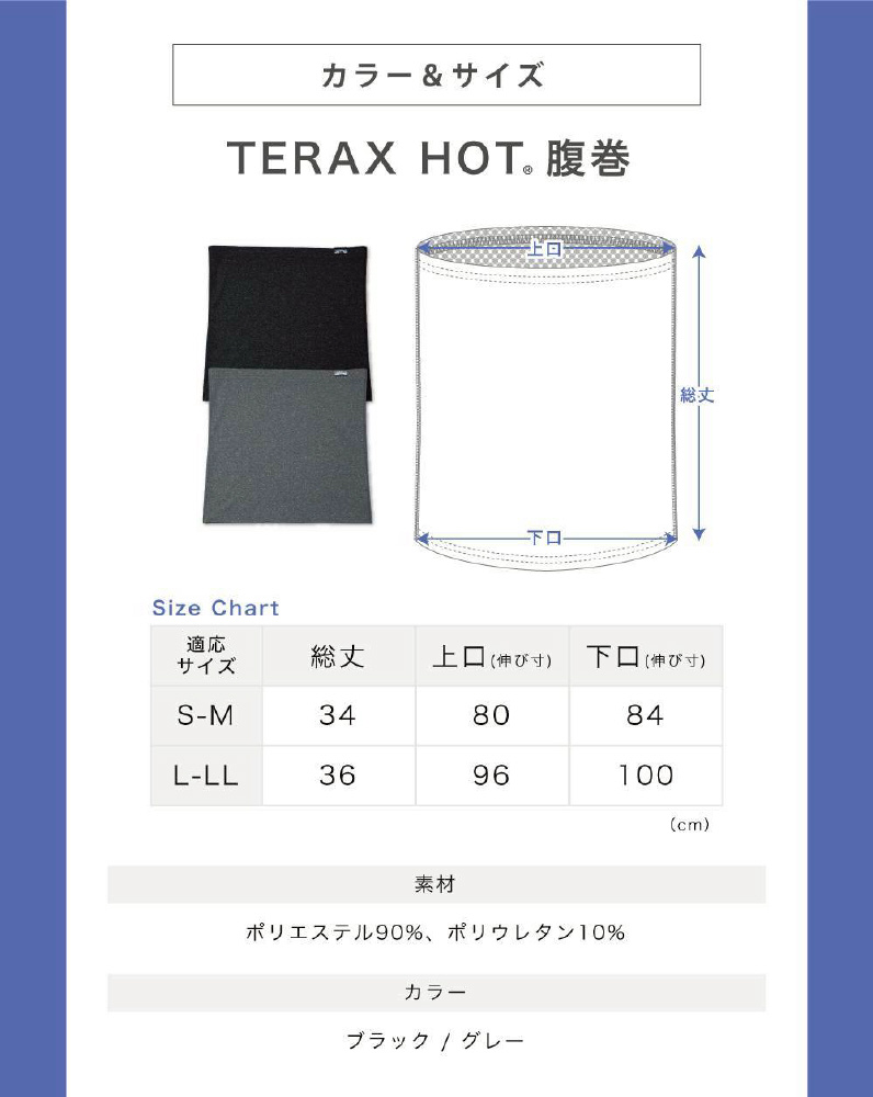 TERAX HOT 血行促進温感 ハラマキ (L-LL) グレー TKL1011-GR13