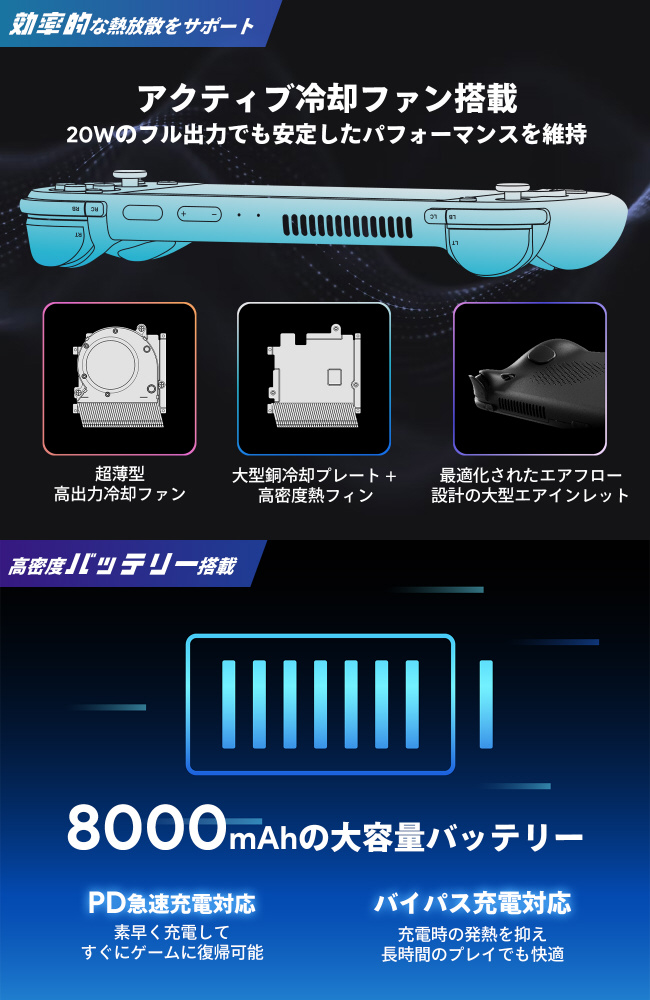 コンパクトなボディで強力なゲーミング性能、越したパフォーマンスと省電力性により、要求の高い3Dモバイルゲームからレトロなクラシックゲーム、さらにはクラウドゲーミングやストリーミングまで、安定した高フレームレートで快適に楽しめます。