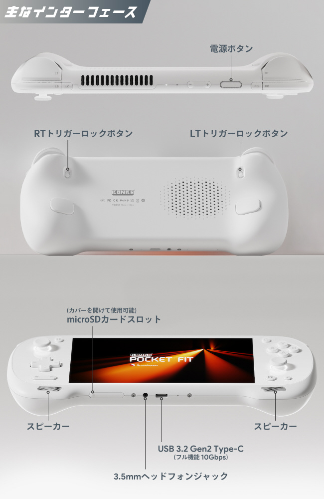 KONKR Pocket FITは、Qualcomm Snapdragon G3 Gen3モバイルプラットフォームを搭載し、軽量なボディながら優れたパフォーマンスを発揮。