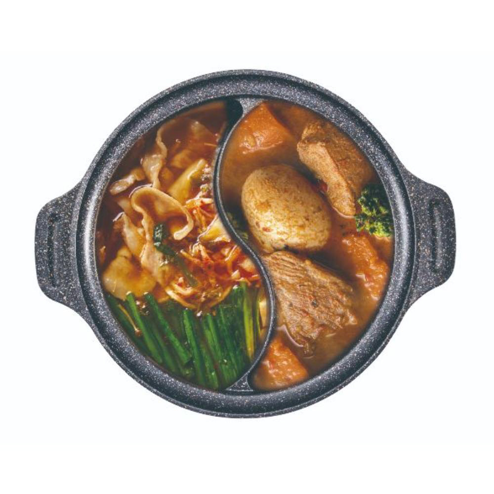 IH・ガス火を含むオール熱源対応!2つの味が同時に楽しめる二食鍋です。