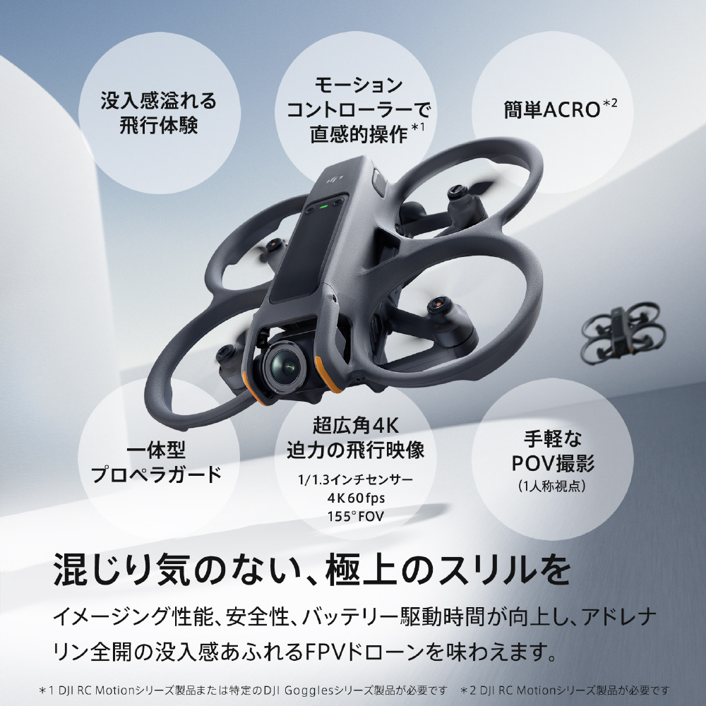 DJI Goggles N3やDJI RC Motion 3と一緒にAvata 2を使用すれば、さらに楽しみが広がります。
