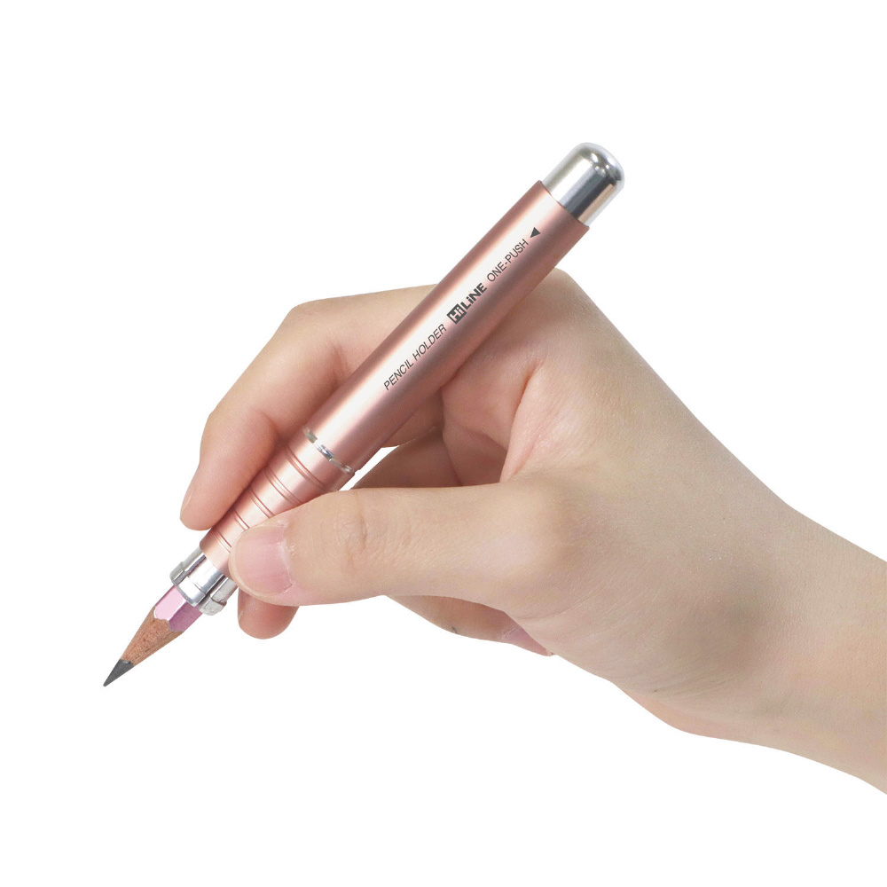 抜き差し簡単ワンプッシュ! ワンプッシュで簡単に鉛筆を着脱 消しゴム付 すべり止め加工 光沢感のあるアルミ製