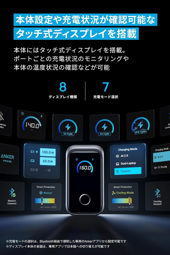 製品本体にディスプレイ機能を搭載した急速充電器
