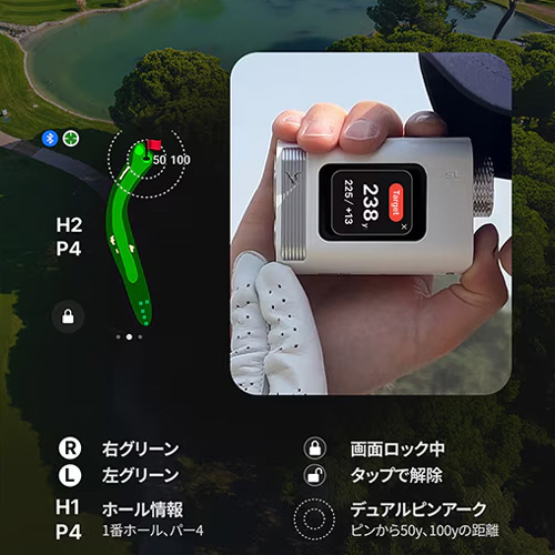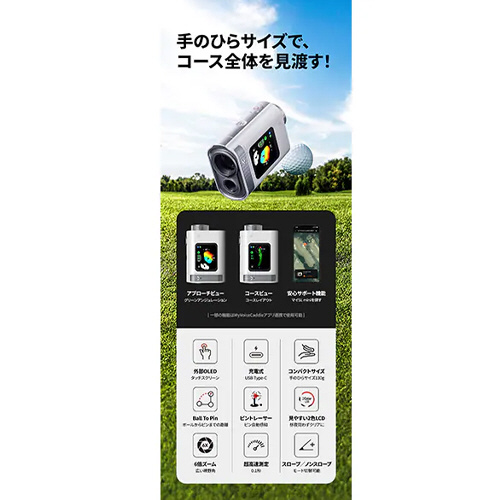 ラウンド中に電池切れの心配もなく、スマートに使い続けられます。環境にも優しく、長く愛用できるのが嬉しいポイント。