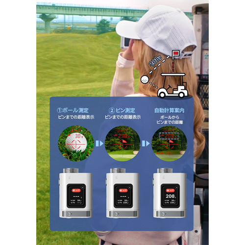 ボールの傍へ行くことなくボールとピンの正確な距離を瞬時に表示します。