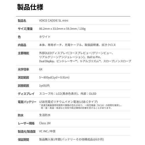 レーザー距離計 ボイスキャディ SL mini ホワイト SLmini
