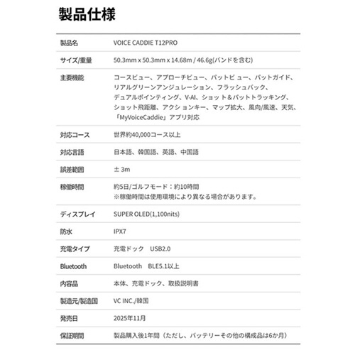 時計型GPSゴルフウォッチ ボイスキャディ T12PRO ブラック