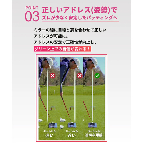 ストロークの軌道を改善し、芯をとらえた一貫したパッティングを促します。