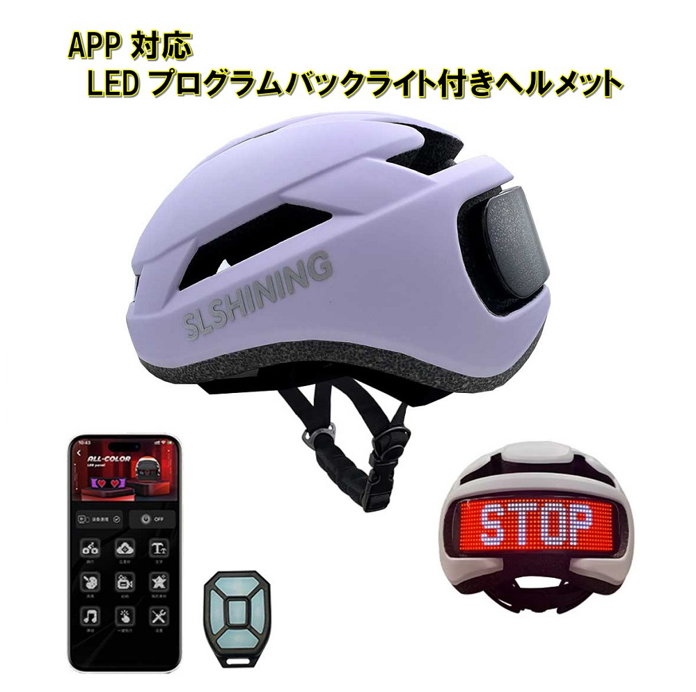 APP対応LEDプログラムバックライト付きヘルメット(パープル)