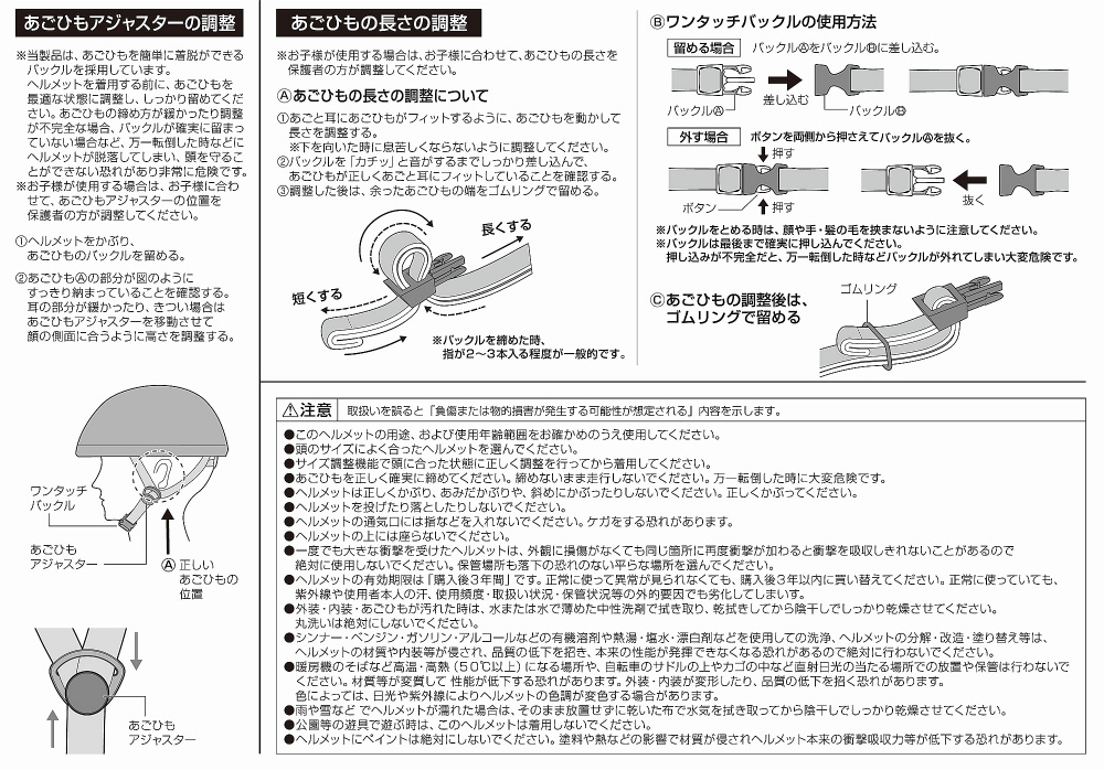 仕様1 材質:シェル=ABS、帽体=EPS、パッド=PU・ポリエステル、あごひも=ナイロン、POM、帽子=ポリエステル