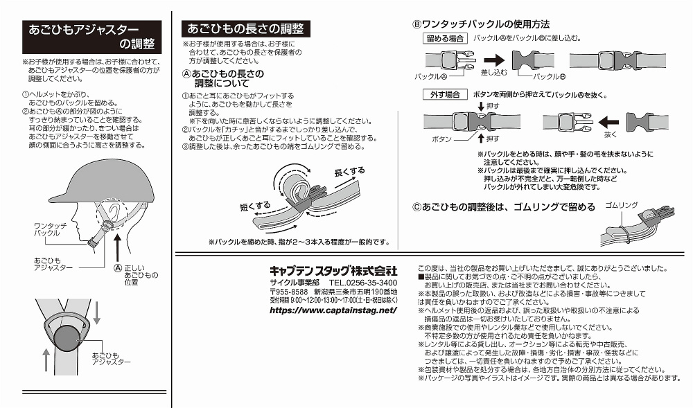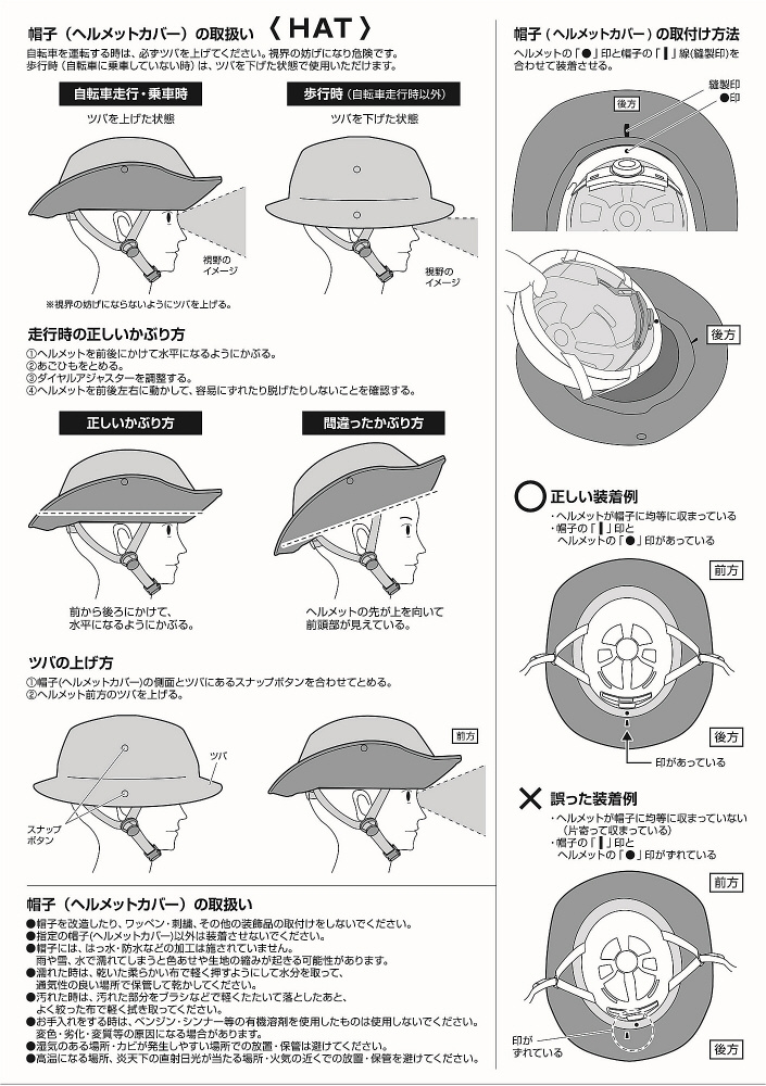 仕様1 材質:シェル=ABS、帽体=EPS、パッド=PU・ポリエステル、あごひも=ナイロン、POM、帽子=ポリエステル