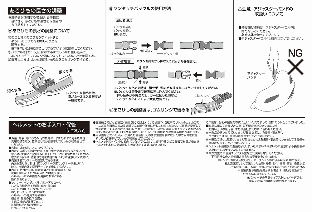 仕様1 材質:シェル=ポリカーボネート、帽体=EPS、パッド=PU・ポリエステル、あごひも=ナイロン・POM