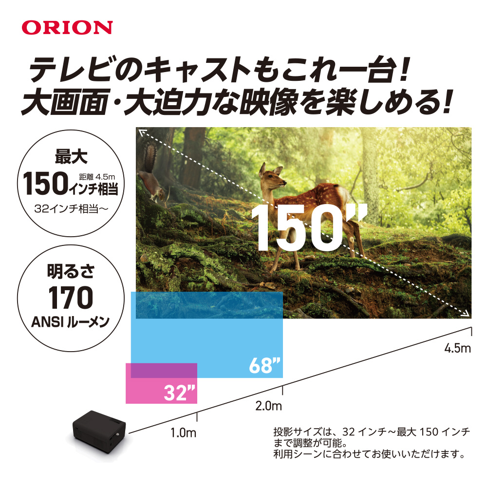 ◆国内テレビブランドとして60年以上の実績がある「ORION」のプロジェクターです。