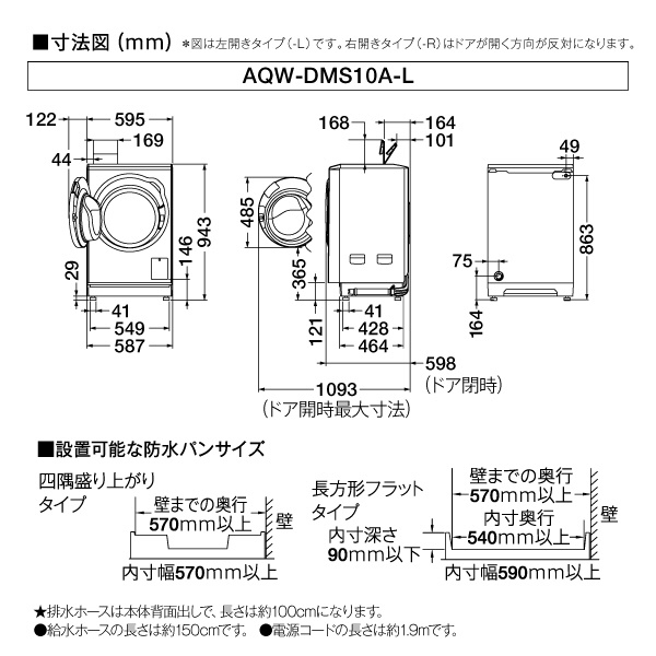 ドラム式洗濯乾燥機 AQUA ホワイト AQW-DMS10A-R(W) [洗濯10.0kg /乾燥5.0kg /ヒートポンプ乾燥 /右開き]