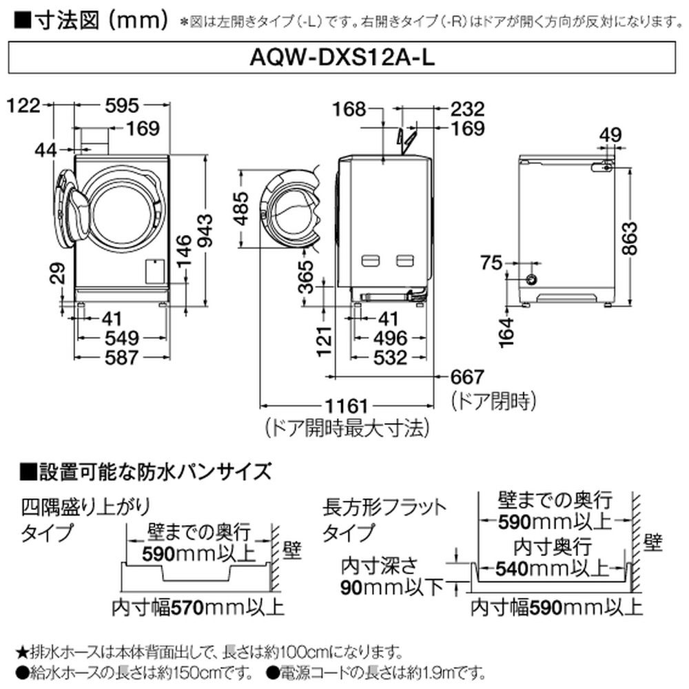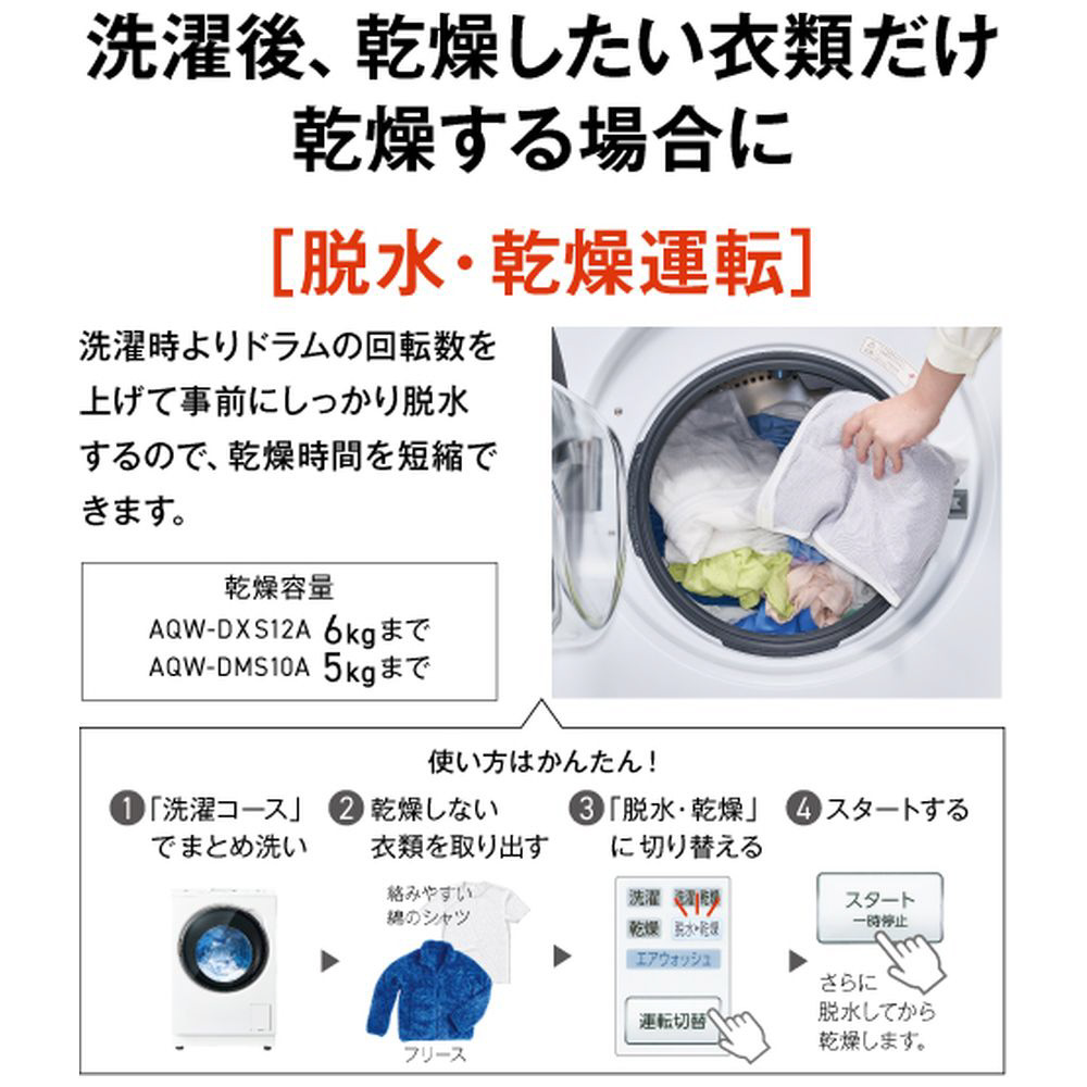 ドラム式洗濯乾燥機 AQUA サファイアブラック AQW-DXS12A-L(K) [洗濯12.0kg /乾燥6.0kg /ヒートポンプ乾燥 /左開き]