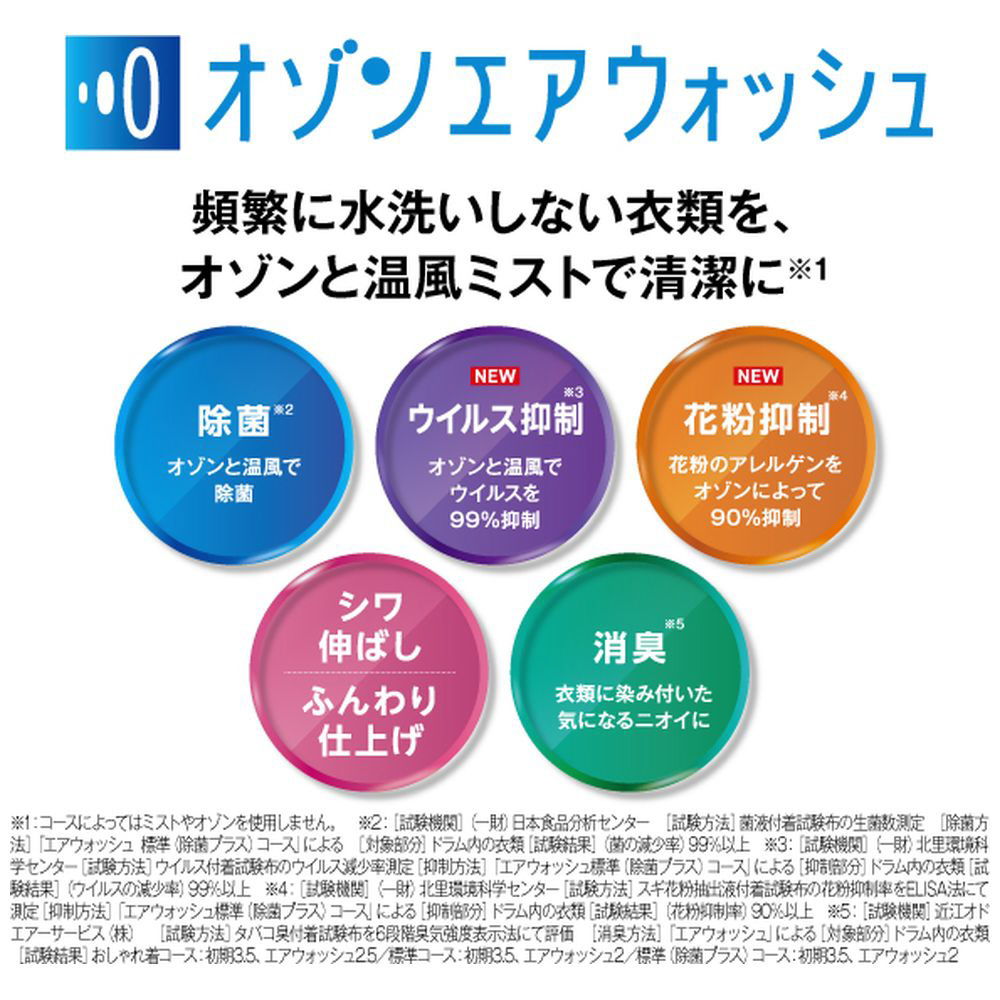 ・除菌・消臭・シワ伸ばし、オゾン効果で花粉やウィルス抑制「オゾンエアウォッシュ」