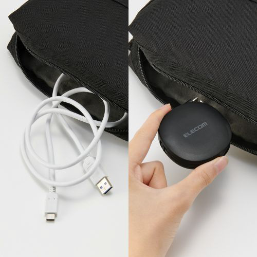 シュルッと収納、絡まずすっきり。約90cmのケーブルがコンパクトにまとまる、巻き取り式のUSB Type-C(TM) - USB Type-Cケーブルです。手のひらサイズのケースで、持ち運びに便利。片手で引っ張って使える片側巻き取り式です。