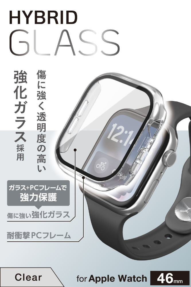 Apple Watch 46mm フルカバーケース プレミアムガラス 高透明 AW-25AFCGCR