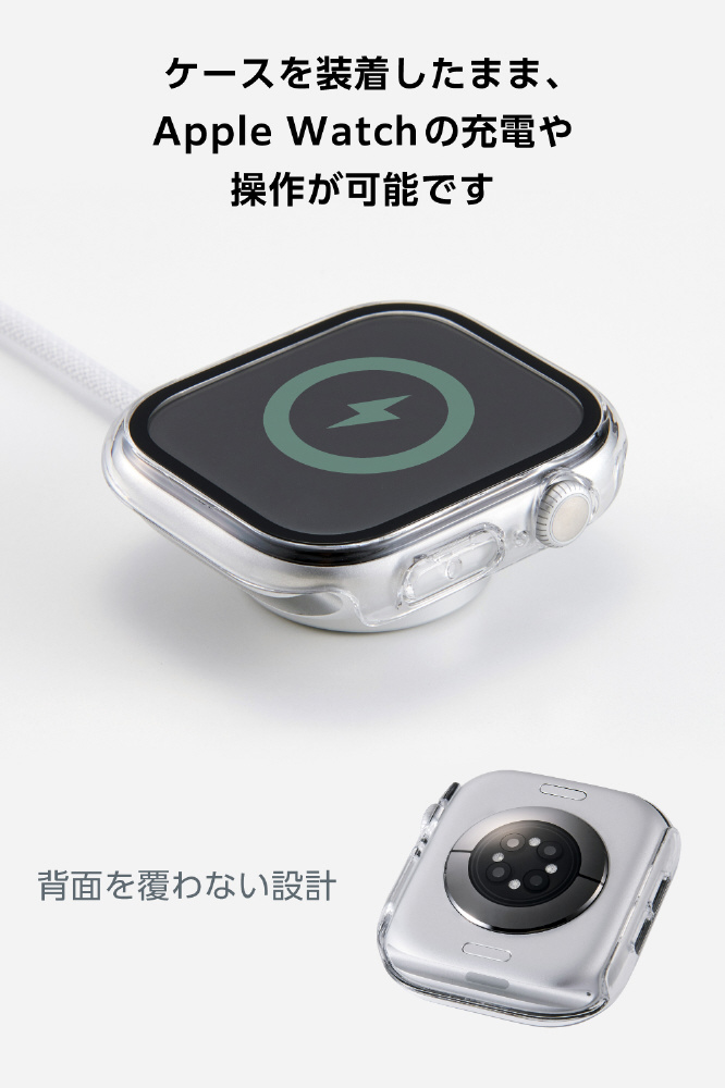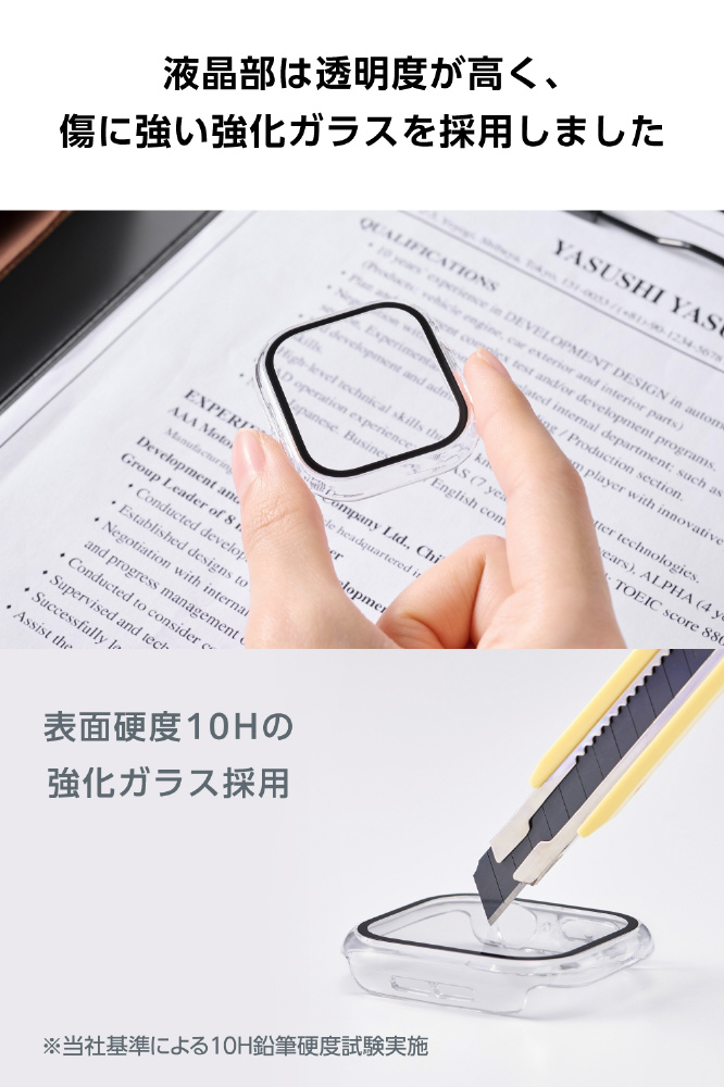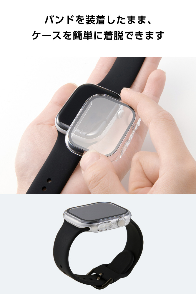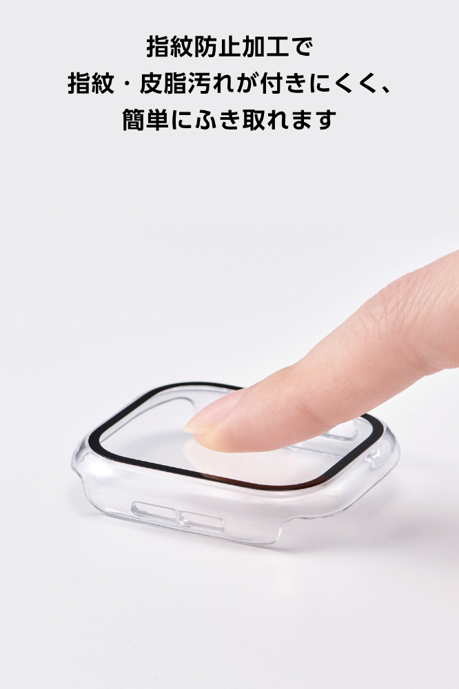 ポリカーボネート素材とガラスの2重構造で、Apple Watchの画面および側面部を保護します。