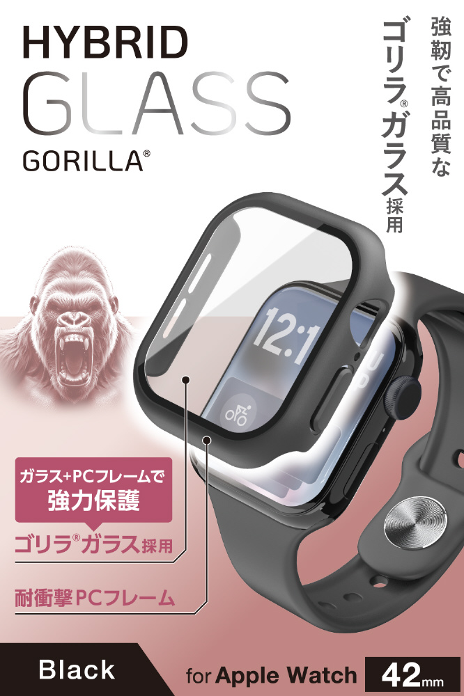 Apple Watch 42mm フルカバーケース プレミアムガラス ゴリラ 高透明 AW-25BFCGOBK