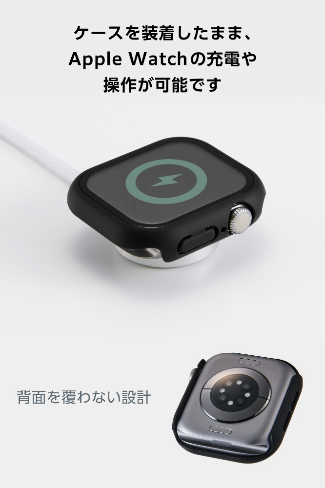 ケースをApple Watchに装着したままで画面の確認、本体の操作、各種ボタン操作、純正の磁気充電ケーブルへの設置が可能です。