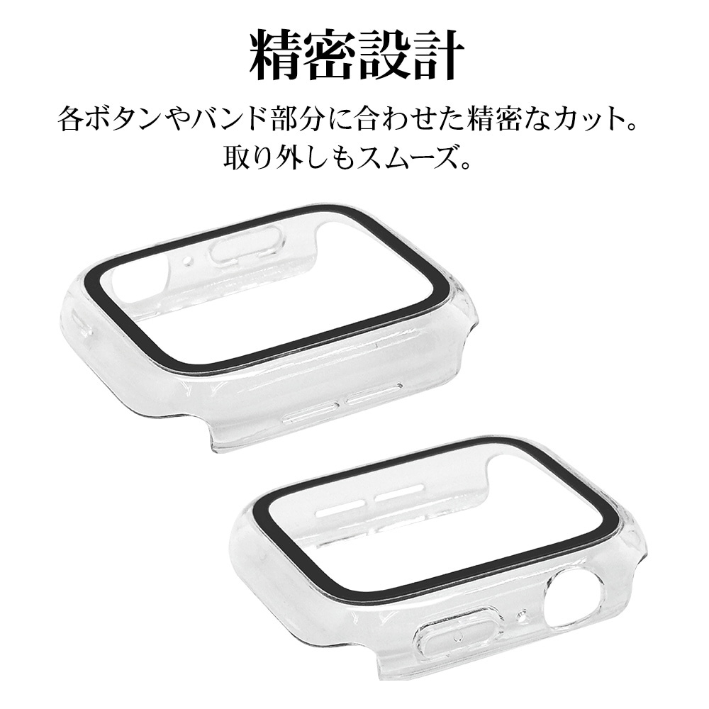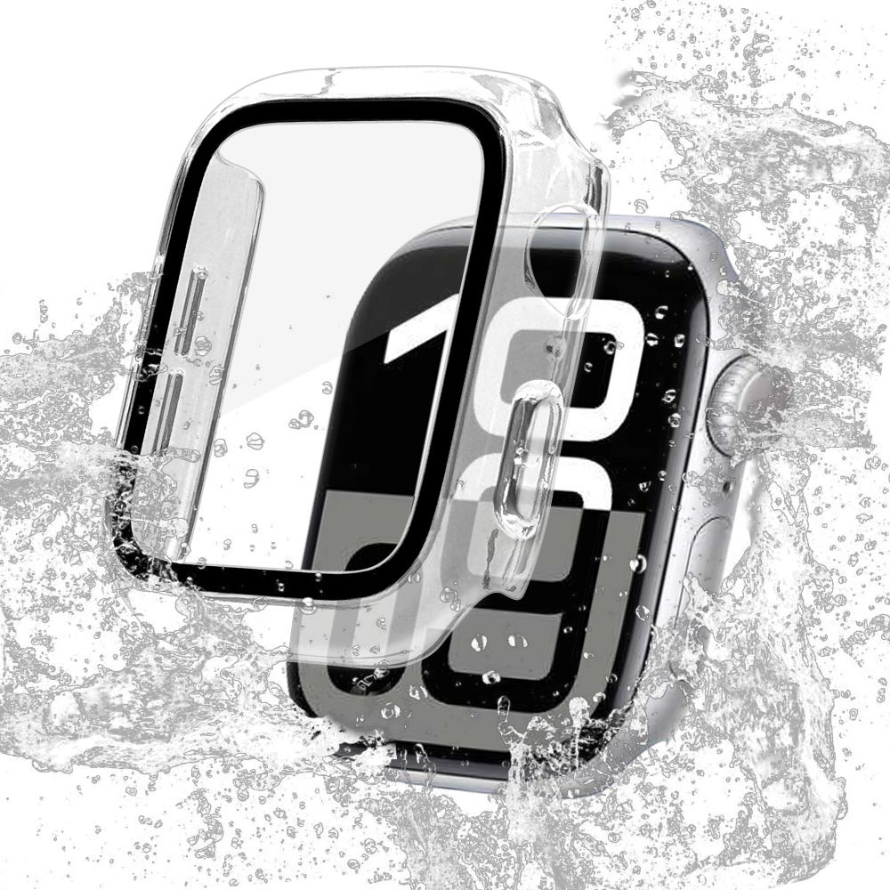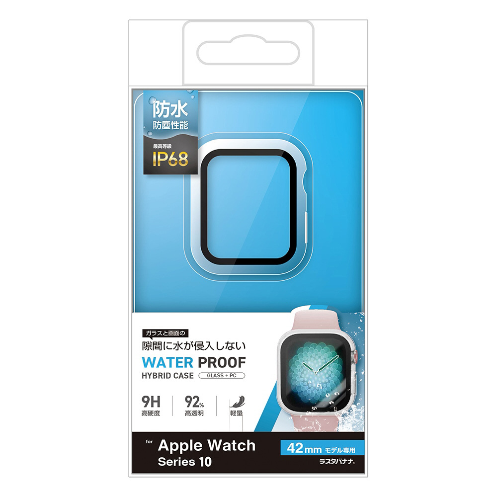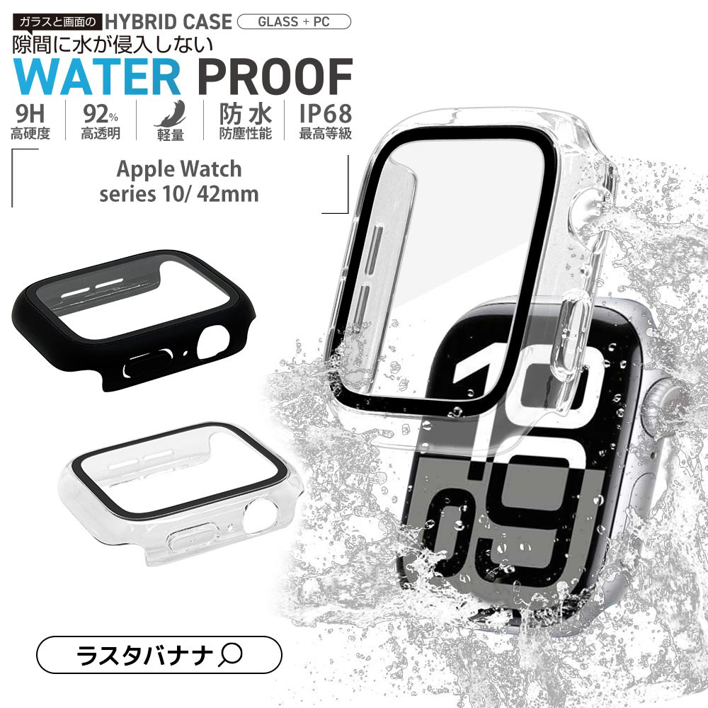 Apple Watch series10 42mm ガラスフィルム ケース カバー ハイブリッド 高光沢 高透明 PC+GLASS ガラス一体型プロテクター 防水ケース IPX68 表面硬度9H アップルウォッチ クリア GHB4811AW42