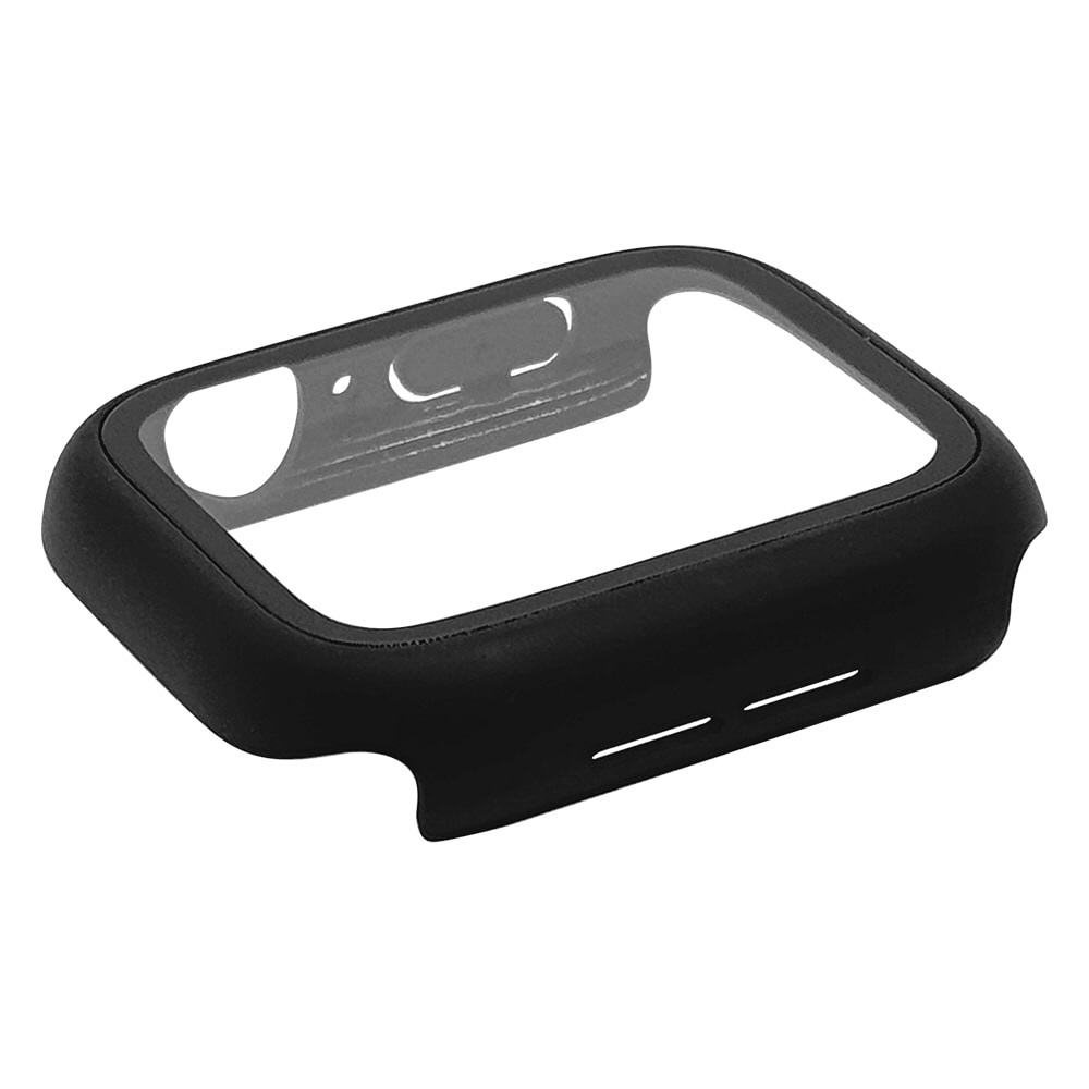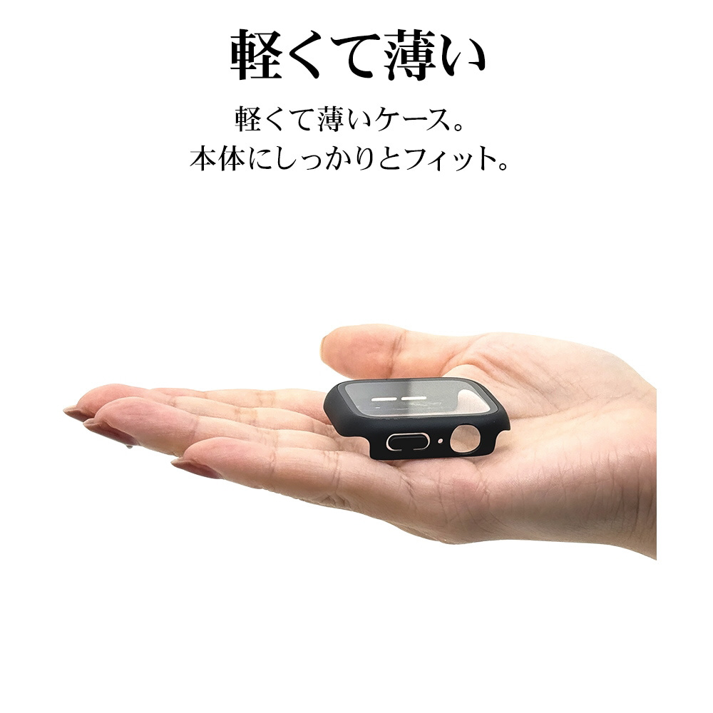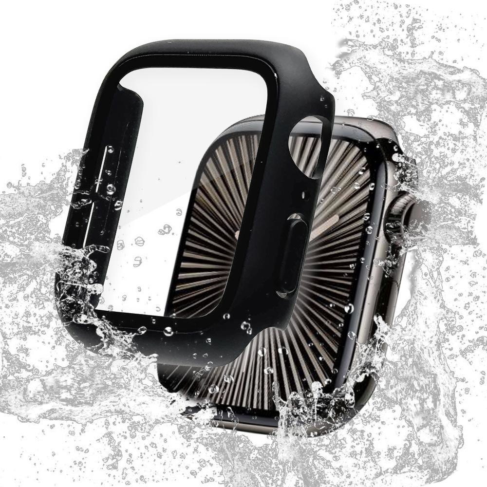 Apple Watch series10 46mm ガラスフィルム ケース カバー ハイブリッド 高透明 クリア PC+GLASS ガラス一体型プロテクター 防水ケース IPX68 表面硬度9H アップルウォッチ ブラック GHB4812AW46