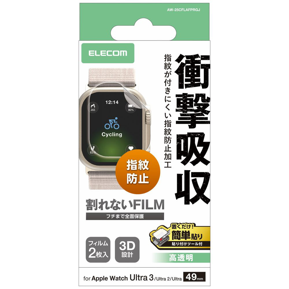 Apple Watch 49mm フィルム 衝撃吸収 高透明 防指紋 貼付ツール付 AW-25CFLAFPRGJ