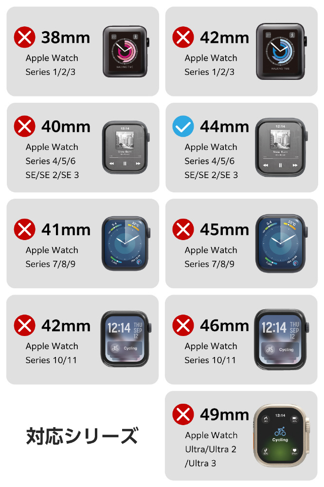 仕様1 ■対応機種:Apple Watch SE 3/Apple Watch SE (第2世代)/Apple Watch SE [44mm]
