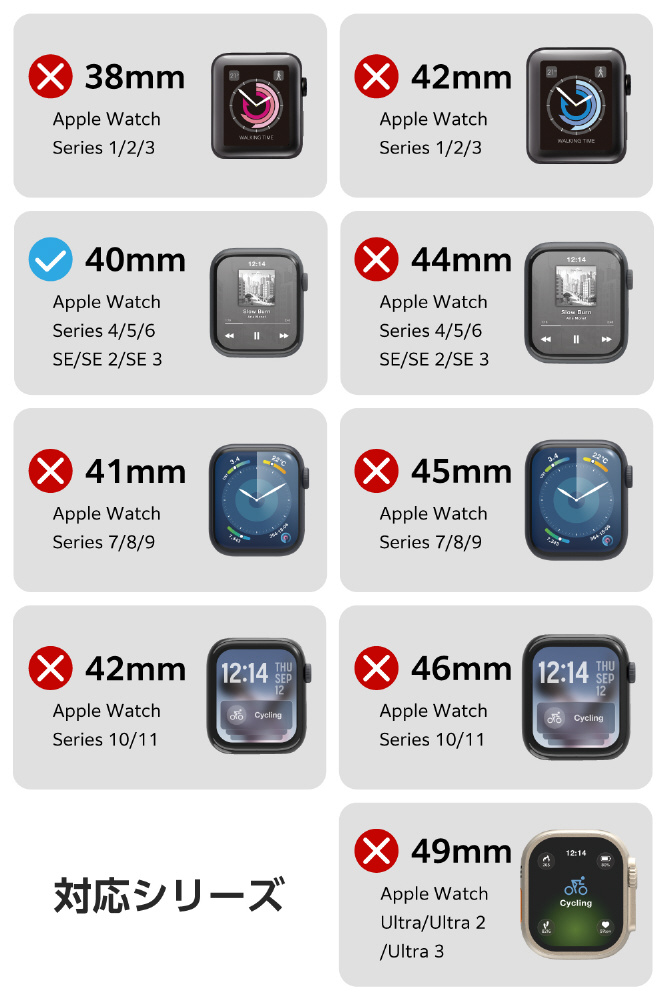 仕様1 ■対応機種:Apple Watch SE 3/Apple Watch SE (第2世代)/Apple Watch SE [40mm]