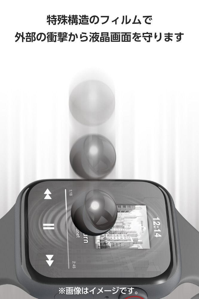 画面の曲面に沿った3D設計で、端末のデザインを損なわずに衝撃から守る衝撃吸収・高透明タイプのApple Watch用フルカバーフィルムです。