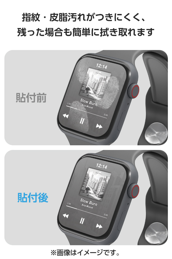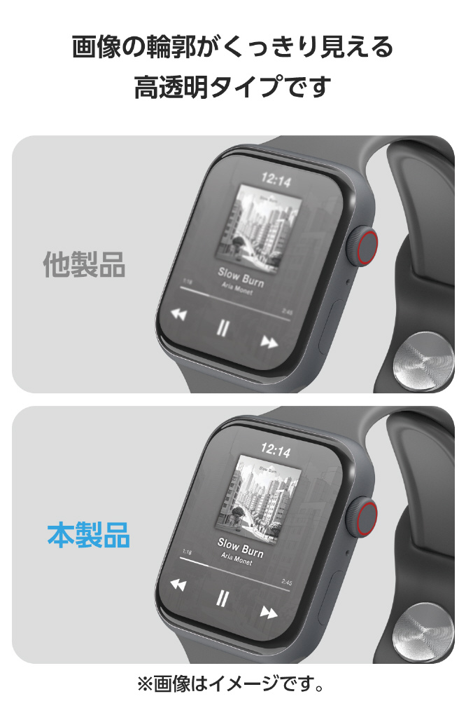 非常に柔らかいウレタン素材を採用することにより、画面の湾曲部分まで保護することができ、Apple Watch独自のデザインを損なわず、まるでフィルムを貼っていないような仕上がりになります。