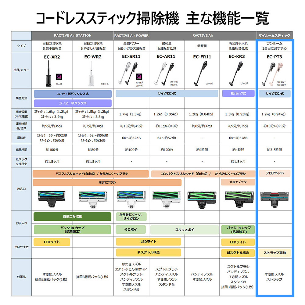 マイルームスティック アッシュピンク EC-PT3-P [サイクロン式 /コードレス /水拭き非対応]