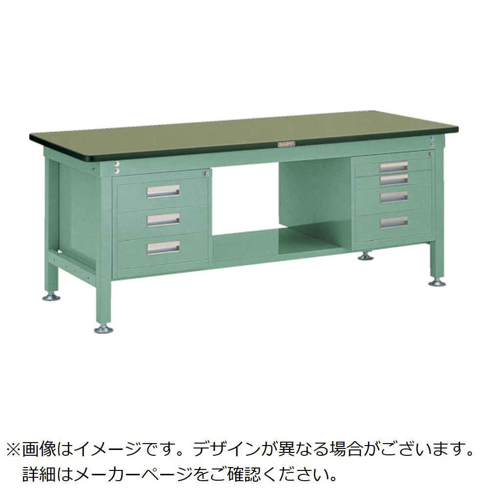 TRUSCO 中荷重作業台(1200kg)HW型 1800×900×H740 3段・4段 引出付 グリーン色 緑
