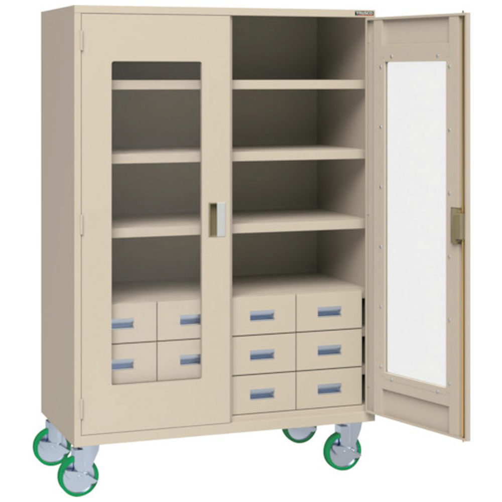 TRUSCO スーパーヘビーキャビネット 窓・引出小 12個・キャスター付