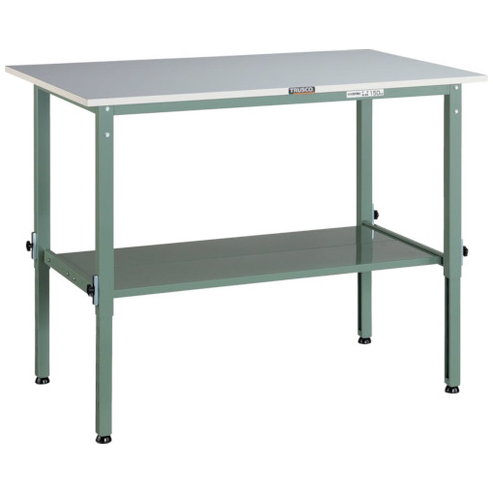 TRUSCO 軽荷重作業台 高さ調節式(150kg)AEM型 1200×750×H650〜950 下棚2枚付 グリーン色