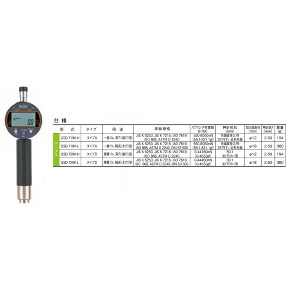 TECLOCK デジタルデュロメータ タイプD 脚長(太穴)型 JIS K 6253準拠
