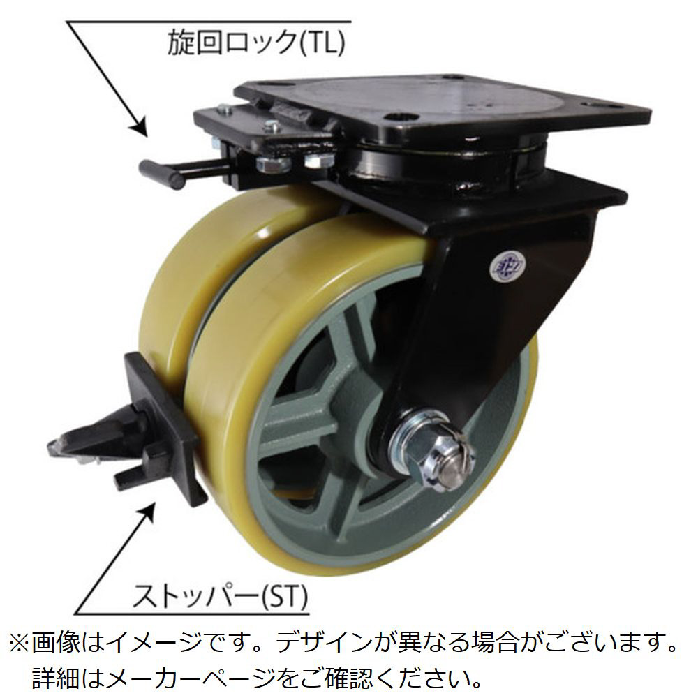 ヨドノ 鋳物超重荷重用双輪キャスター 自在車 ウレタン車輪 旋回ロック付