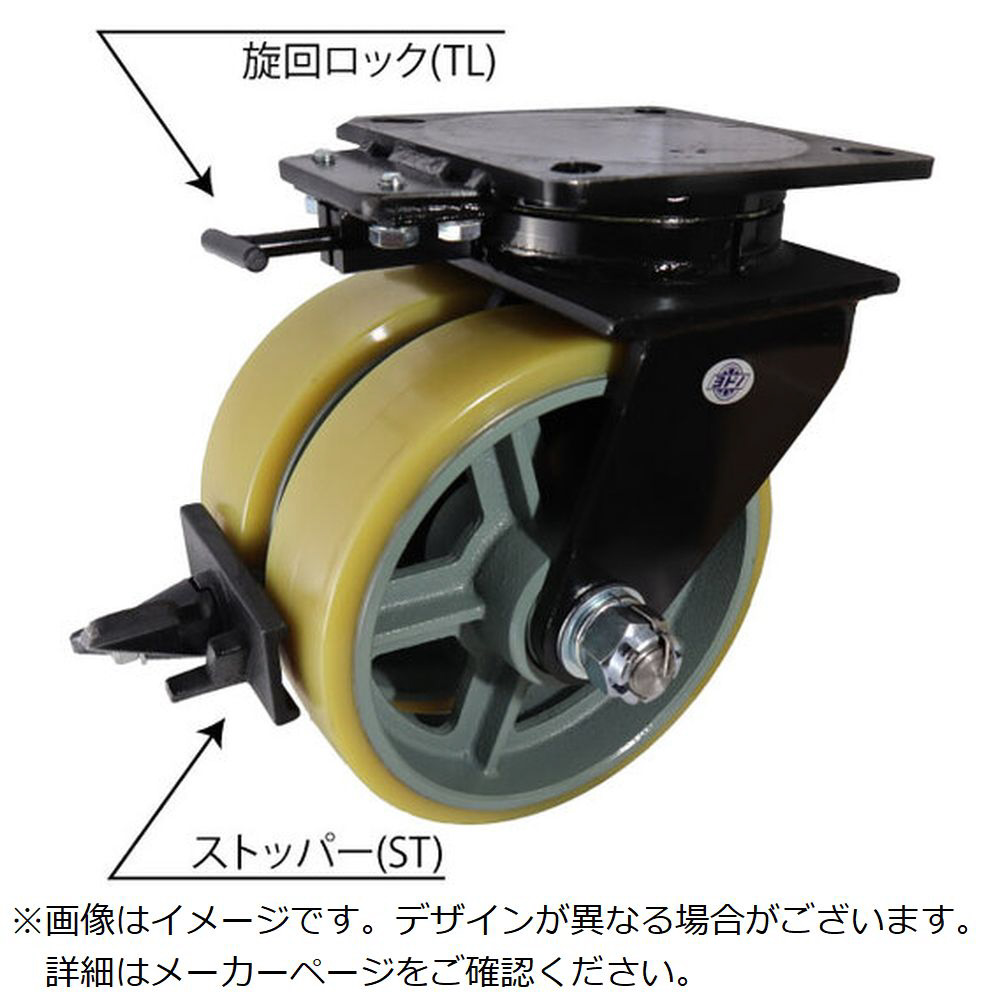 ヨドノ 鋳物超重荷重用双輪キャスター 自在車 ウレタン車輪 ストッパー旋回ロック付