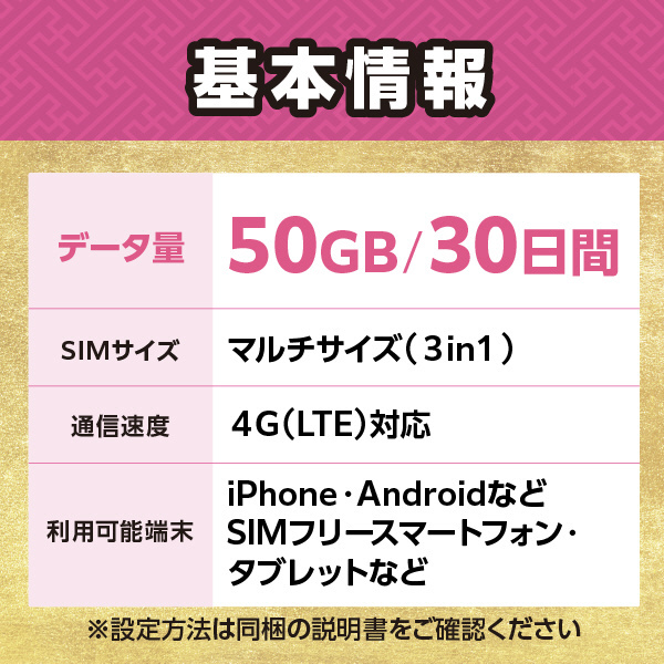 Tourist SIM for Japan 50GB 30日間 [マルチSIM /SMS非対応]