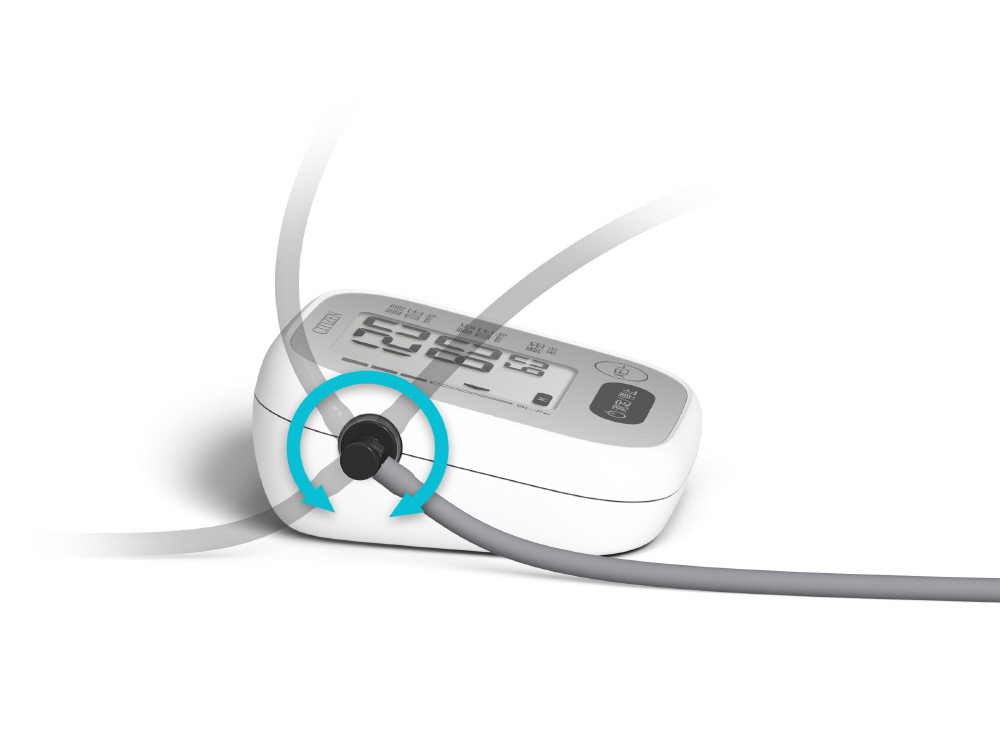 「クルッとカフ」は回転カフコネクターにより、カフホースが収納方向へ回転し、ねじれることなく収納。